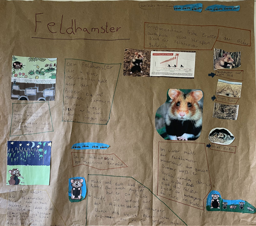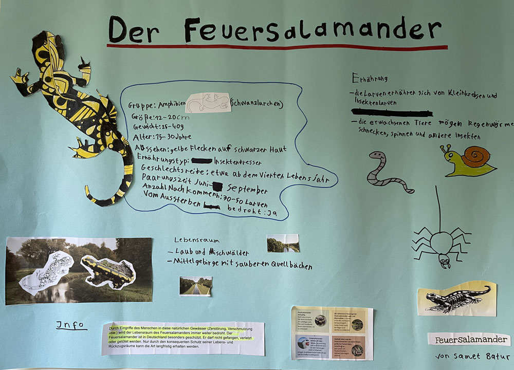İlk derslerde Allah(cc)‘ın yarattığı alemin muhteşem düzenine vurgu yapıldı. Bunu binâen insanın çevresine ve dünyaya karşı sorumlulukları ele alındı, sorumsuz davranışların neticesi gösterildi (misal: küresel ısınma ama özellikle de hayvan nesillerin tükenmesi). Ardından proje olarak bir plakat çalışması başlattık, yöresel hayvanlardan yola çıkarak her çocuk kendi seçtiği bir hayvan hakkında bir çalışma hazırladı ve sınıf önünde tanıttı.
